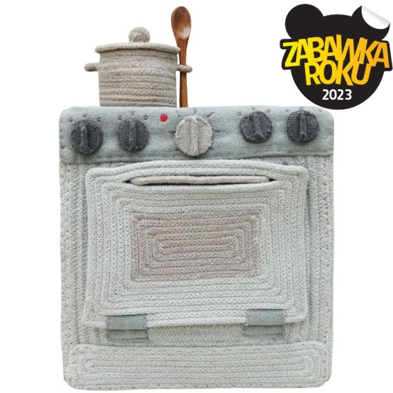 W pełni ręcznie wykonana tekstylna kuchenka zabawkowa, która jest jednocześnie koszem do przechowywania. Produkt zdobył prestiżową nagrodę Zabawka Roku 2023!
