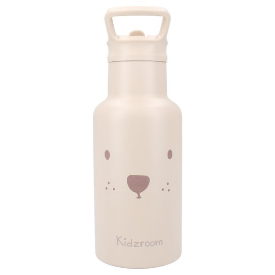 uroczy beżowy bidon ze stali nierdzewnej z wesołą buźką misia,
