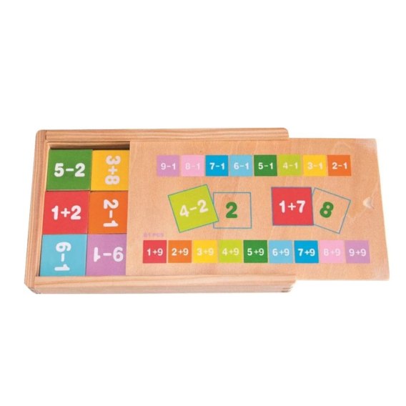 - Zawiera tabliczki z działaniami dodawania i odejmowania oraz odpowiedziami,