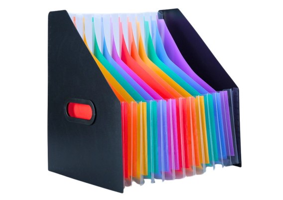 Pionowa Teczka Organizer Na Dokumenty Kolorowe Zakładki Kieszenie Czarna A4