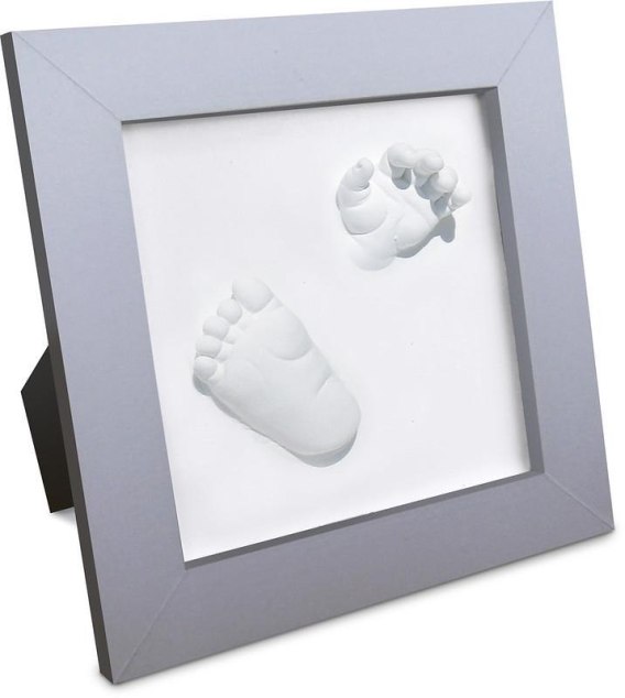 odcisk dłoni i stópki malucha dosłownie „wychodzących" z ramki, tworząc