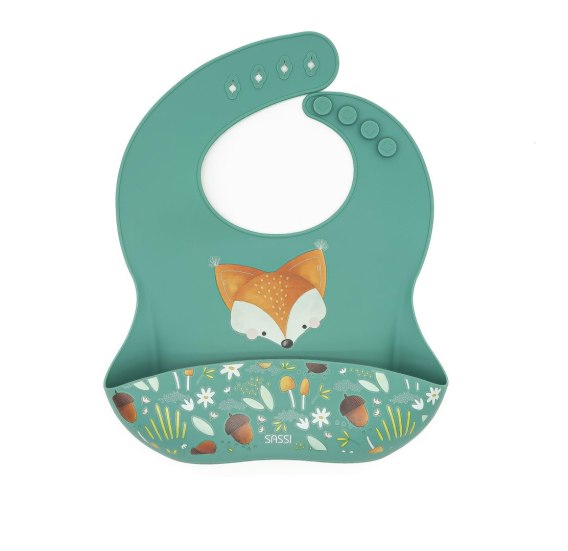 Silikonowy śliniak z kieszonką Lisek