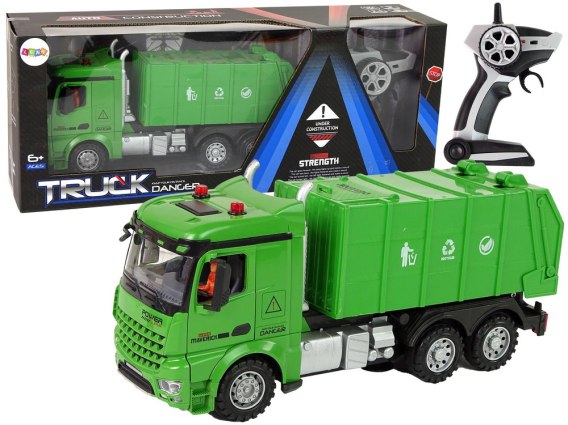 Śmieciarka Zdalnie Sterowana Zielona Pilot 2,4G Światła Dźwięk