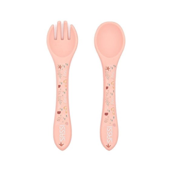 Wygodne i poręczne sztućce w kolorze pudrowego różu z printem, który ozdabia rączki łyżki i widelca, oraz pasuje do kolekcji z ośmiorniczką tej marki, zachęca dziecko do sięgania po kolejne kęsy i zamienia posiłek w radosną przygodę.