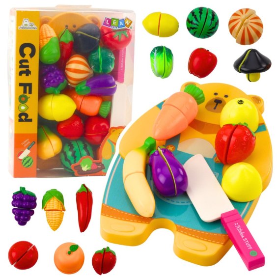 Zestaw do krojenia owoców i warzyw to doskonała zabawka edukacyjna, która wprowadza dzieci w świat kulinarnych przygód. Dzięki kolorowym elementom dziecko może odgrywać rolę kucharza, kroić produkty i tworzyć własne potrawy. Wszystkie warzywa i owoce wyko