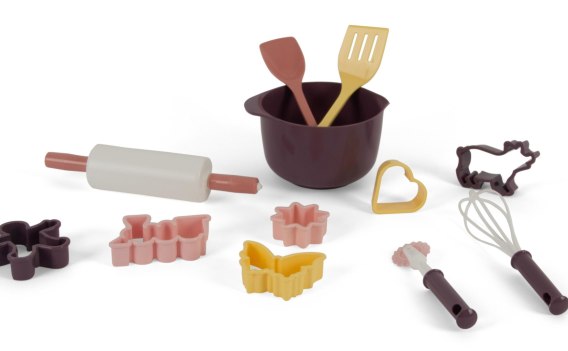 kolorowy zestaw do zabawy w pieczenie i formowanie ciastek lub figur zachęca do zabawy sensorycznej - dotykania, ugniatania i tworzenia kształtów wspiera rozwój koordynacji ręka-oko i motoryki małej umożliwia zabawę w domu i na świeżym powietrzu (piaskownica, ogród) idealny do zabawy z innymi zabawkami kuchennymi i piekarniczymi